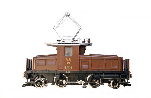 RhB Elektrolokomotive Gea 2/4 Spur G (Schmalspur) - Art.Nr. 24440Um einen dampflosen Rangierbetrieb in den Bahnhöfen Chur und Landquart zu ermöglichen, wurden zwischen 1943 und 1946 drei Elektrolokomotiven des Typs Ge 2/4 auf Mittelführerstand (sog. Bügeleisen) umgebaut und auch umgezeichnet. Durch die Gewichtsersparnis konnte bei Lok 211 sogar eine Akku-Batterieanlage eingebaut werden. Die Lok wurde dann als Gea 2/4 bezeichnet. Das LGB Modell 24440 gibt diese Lok vorbildgerecht wieder. Das Modell verfügt über einen zugstarken Bühler-Motor, MZS-Decoder, funktionierende Oberleitung, automatisch mit der Fahrtrichtung wechselnde Beleuchtung, 2 Mehrzweck-Steckdosen mit Sicherung, 6 Stromabnehmer, Spannungsbegrenzungssystem, Führerstandstüren zum Öffnen, Haftreifen. Länge über Puffer 38 cm.