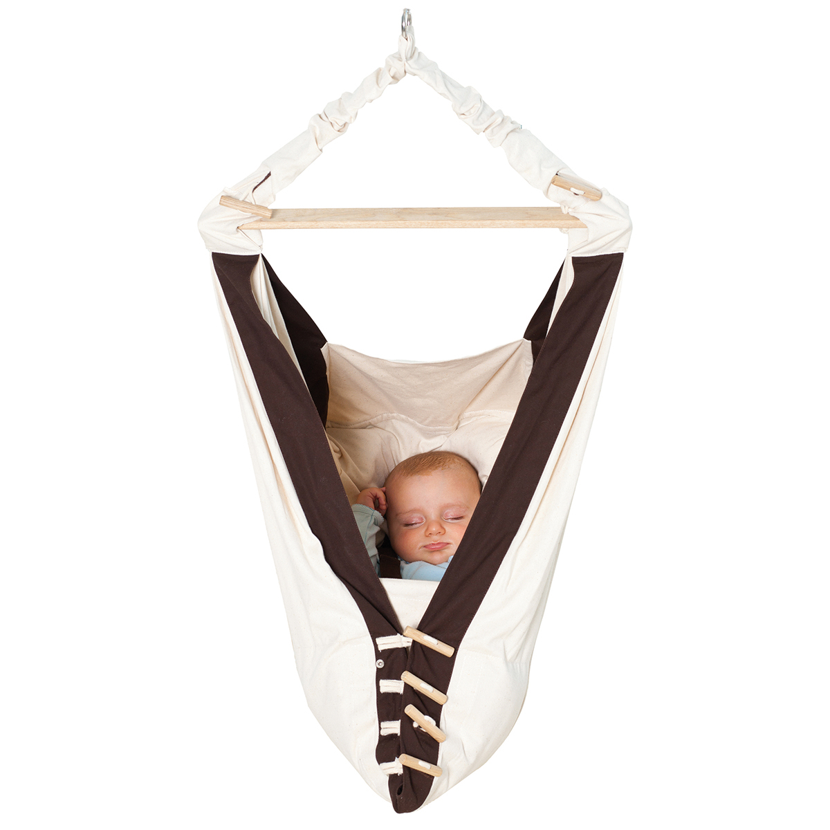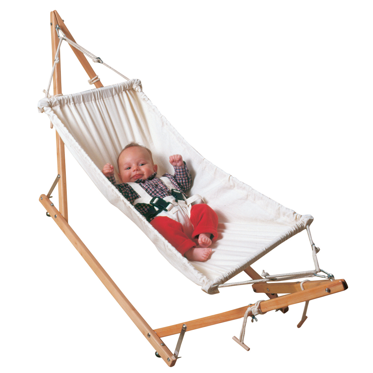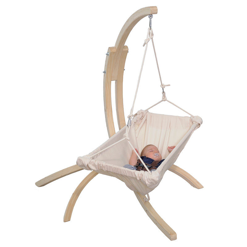 So können sich auch unternehmungslustige Eltern überall entspannen, während die Babys wohlig und zufrieden schaukeln und dabei noch aufmerksam und interessiert das Geschehen um sie herum beobachten können. Außerdem unterstützt die anschmiegsame Form der Hängematte das Erlernen der Hand-Fuß-Koordination und verschafft durch die Entlastung der Bauchdecke Erleichterung bei Blähungen.