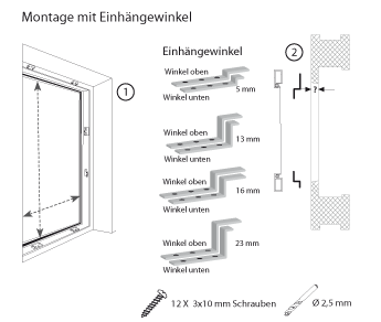 In der Höhe ergeben sich keine Abzugsmaße. Schneiden Sie die beiden Profile für die Höhe genau in dem Maß ab, welches Sie gemessen haben. Messen Sie nun die Dicke des Fensterfalzes um festzulegen, welche Einhängewinkel verwendet werden können (Siehe Abb. 2) Im Lieferumfang befinden sich verschiedene Stärken von Einhängewinkeln. Oben am Insektenschutzrahmen montieren Sie den Winkel mit dem längeren und am unteren Rahmen die Winkel mit dem kürzeren Schenkel. Dadurch lässt sich der Rahmen leichter am Fenster einhängen. Die Einhängewinkel montieren Sie (Siehe Einhängevorgang) mit dem im Lieferumfang befindlichen Schrauben. Entscheiden Sie sich für die Montageart mit Einhängewinkel dann, wenn Sie den Spannrahmen nicht von außen am Fenster montieren können, Sie also die Montage bzw. das Einhängen des Spannrahmens rauminnenseitig durchführen müssen. Dies kann z.B. bei Fenstern in oberen Stockwerken ohne Balkon oder bei Fenstern mit Rollladen Führungsschienen der Fall sein. Messen Sie die lichte Breite und Höhe des Anschlagfalzes Ihres Fensterrahmens (siehe Abb. 1) und ziehen Sie in der Breite von diesem Maß 40 mm ab. Dies ist Ihr fertiges Schnittmaß um welches Sie die beiden Aluminiumprofile für die Breite des Rahmens kürzen müssen!