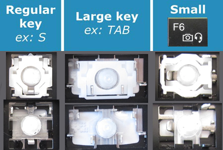- The Hinge. These are the nylon pieces that hold the key to the keyboard. Some models may also have a U-shaped retainer clip that you will receive.