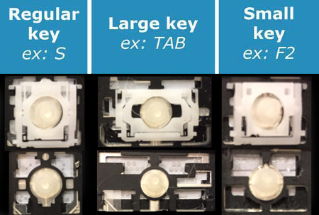 - The Hinge. These are the nylon pieces that hold the key to the keyboard. Some models may also have a U-shaped retainer clip that you will receive.