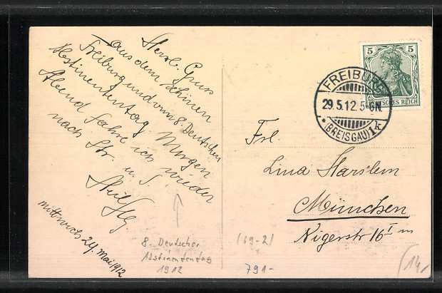 gelaufen 1912, Stempelspur, sonst guter Zustand