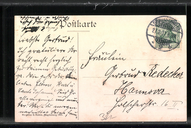 ![]() ![]() 6999177 Ansichtskarte / Postkarte gelaufen 1907, guter Zustand Versandkosten: Kostenloser Versand Zahlungsmöglichkeiten: Überweisung, Paypal Versandkosten sparen - kombinieren Sie Auktionen von mehreren Tagen ! Für mehr alte Ansichtskarten & Heimatbelege klicken Sie hier !