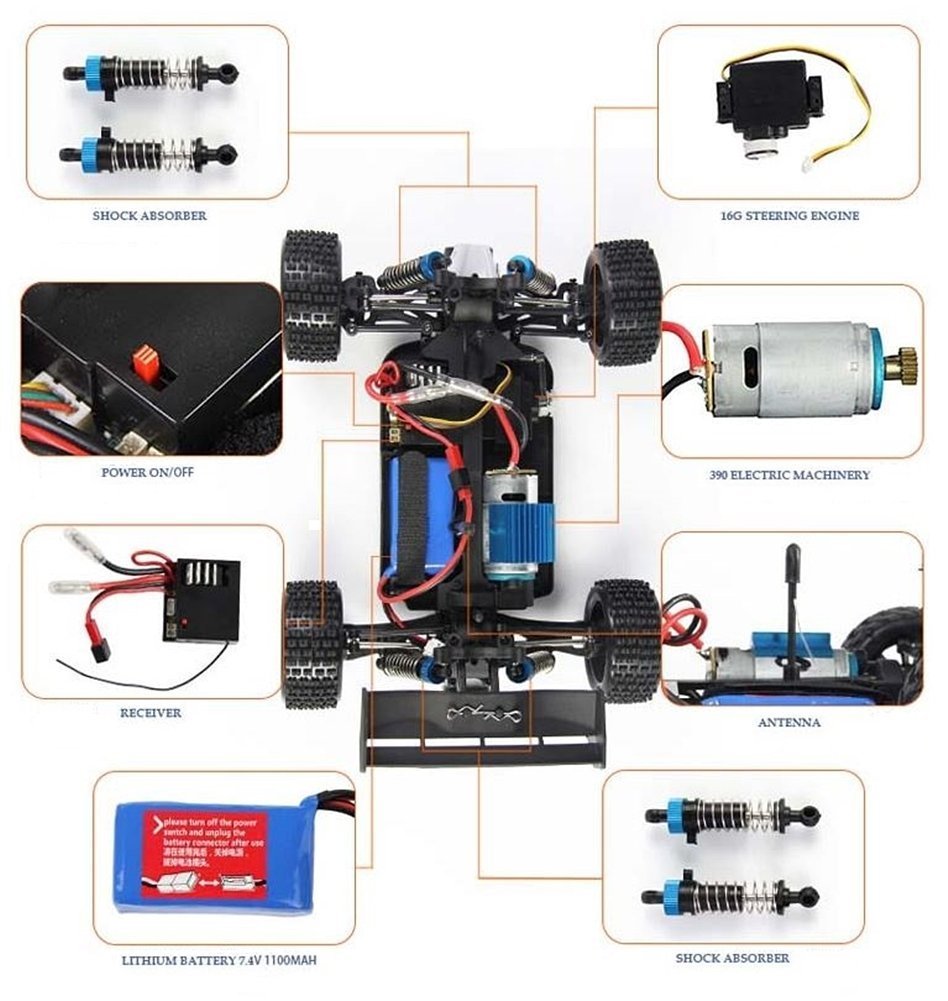 Radstand: 165mm Reifendurchmesser: 61mm Drahtbreite:28mm Geschwindigkeit von dem Artikel ist etwa 45KM /H. Mit vier Rad-Einzelradaufhängung und einem offenen Differential auf der Vorder- und der Rückseite . das Allradantrieb RC Car hat Funksystem, elektronische Drehzahlregelung von der vorner und Rückfahr, 1100mAh 7.4V Akku und ein einfaches Ladegerät. man kann einfach das Rc Car kontrollieren und fahren. Kinder können mit dem Buggy auch recht gut umgehen. Schöne Inneneinrichtung und Design * Super leicht, super starken Motor und stabile Funktion * nach Vorne, nach Hinten, nach Links nach Rechts, stop. * Unglaublich proportional Präzisionssteuerungen mit Zahnstangenlenkung und super glatte Getriebe, so können Sie wirklich das Ra Car wie ein echtes Auto manövrieren. Mit vier Rad-Einzelradaufhängung und einem offenen Differential auf der Vorder- und der Rückseite Spezifikation * Frequenz: 2.4 G * Radstand: 165 mm * Reifendurchmesser: 61mm * Rad-Breite: 28mm * Fernsteuerungsbatterie: 4 x AA-Batterie * Body Batterie: 7.4V 1100mAh * Ladezeit: 150 Minuten * Bei Verwendung von Time: Etwa 10 Minuten * Fernsteuerungsabstand: 100 Meter * Motor: 390 * Geschwindigkeit: Über 50 km / h * Server: 17 g * Abmessungen: (9,65 * 6,89 * 3,7) "(24,5 * 17,5 * 9,4) cm * Fahrzeug-Gewicht: 520g; Paketgewicht: 1540g Packungsinhalt 1 x RC Car 1 x Ladegerät 1 x Li-Po-Akku 1 x Li-Po-Akku-Ladegerät 1 x-Übermittler 1 x User Manual in english