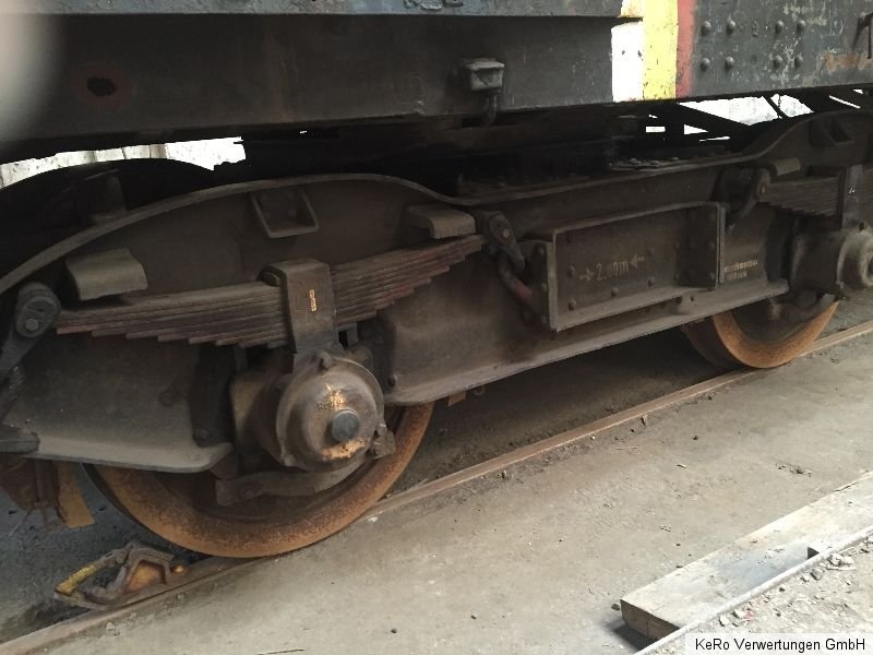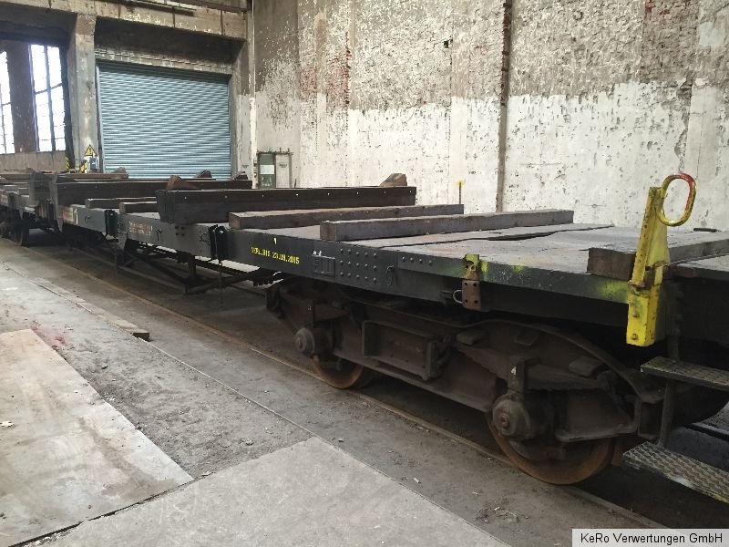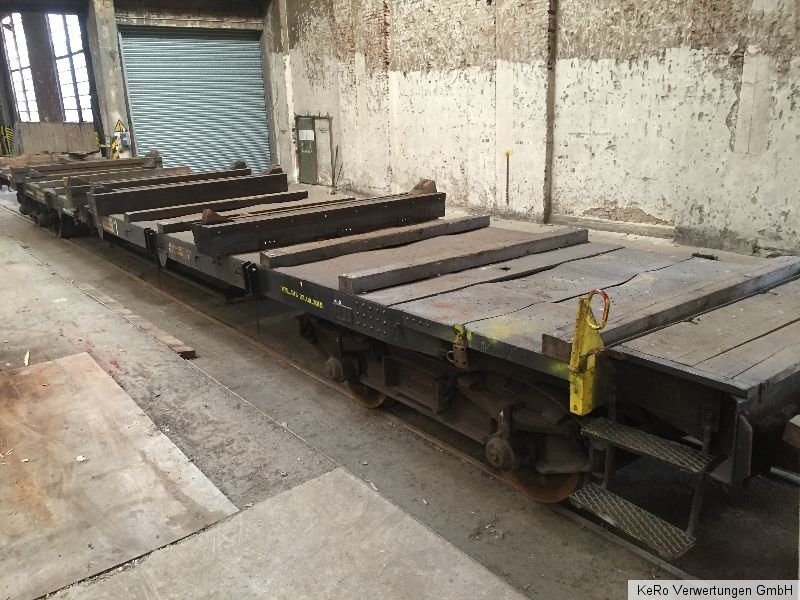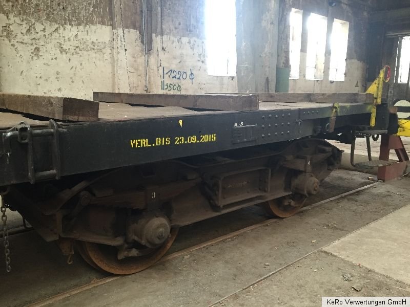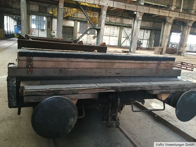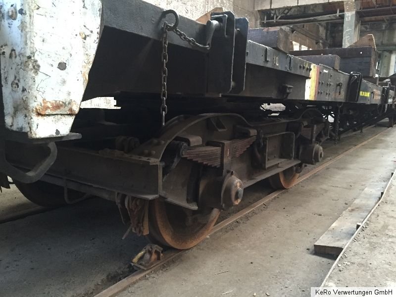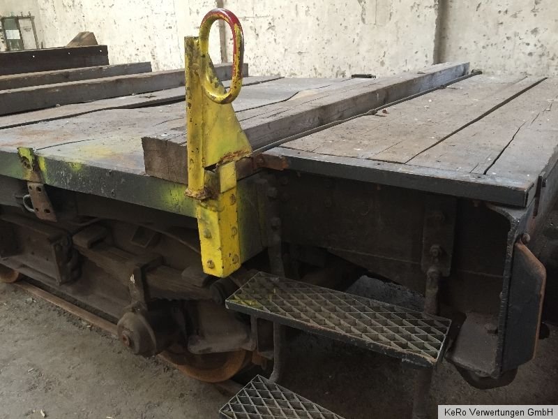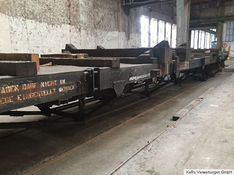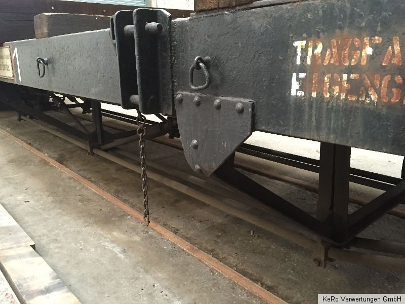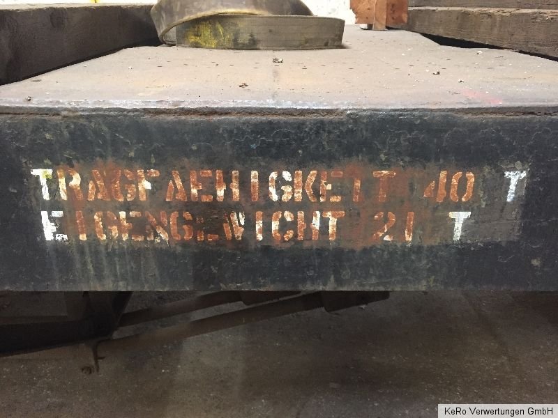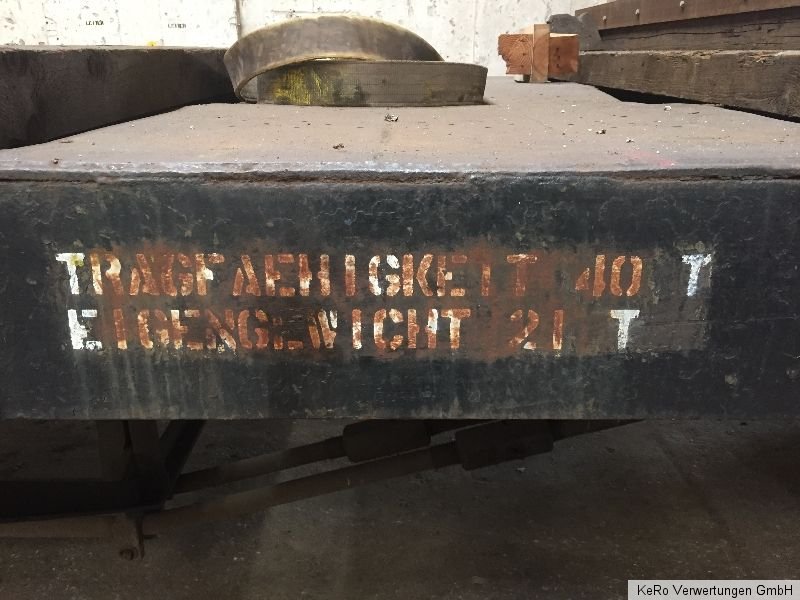 Waggon / Anhänger Länge: 20.000 mm Auflagebreite: 2670 mm Gesamtbreite: 2690 mm Höhe: 1320 mm Tragfähigkeit: 40 t Eigengewicht: 21 t Raddurchmesser: 900 mm Achsabstand: 2000 mm Baujahr: unbekannt Zustand und Weiteres - siehe Fotos - !