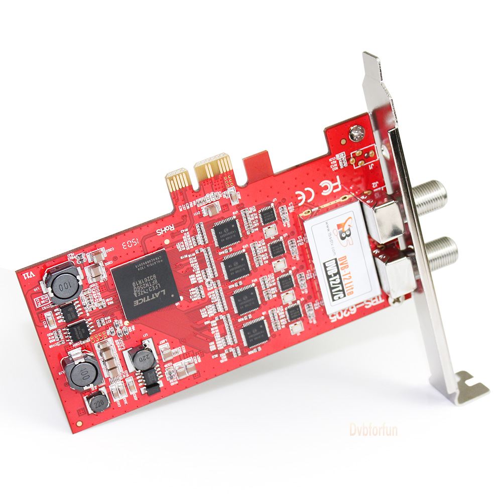 TBS6205, the successor of TBS6285, is a DVB-T2/T TV quad tuner card with PCI-Express interface, it can be used for watching four different channels from four different frequencies simultaneously, and it supports DVB-C standard at the same time. TBS 6205 works also as a digital video recorder for recording digital terrestrial TV programs with full HDTV support. With the Time-shifting function, it enables you to pause a live broadcast and continue from where you left. This DVB T2 PC TV card is ready with windows BDA driver and Linux driver. It's ideal for watching UK Freeview SD and HD channels on your desktop PC.