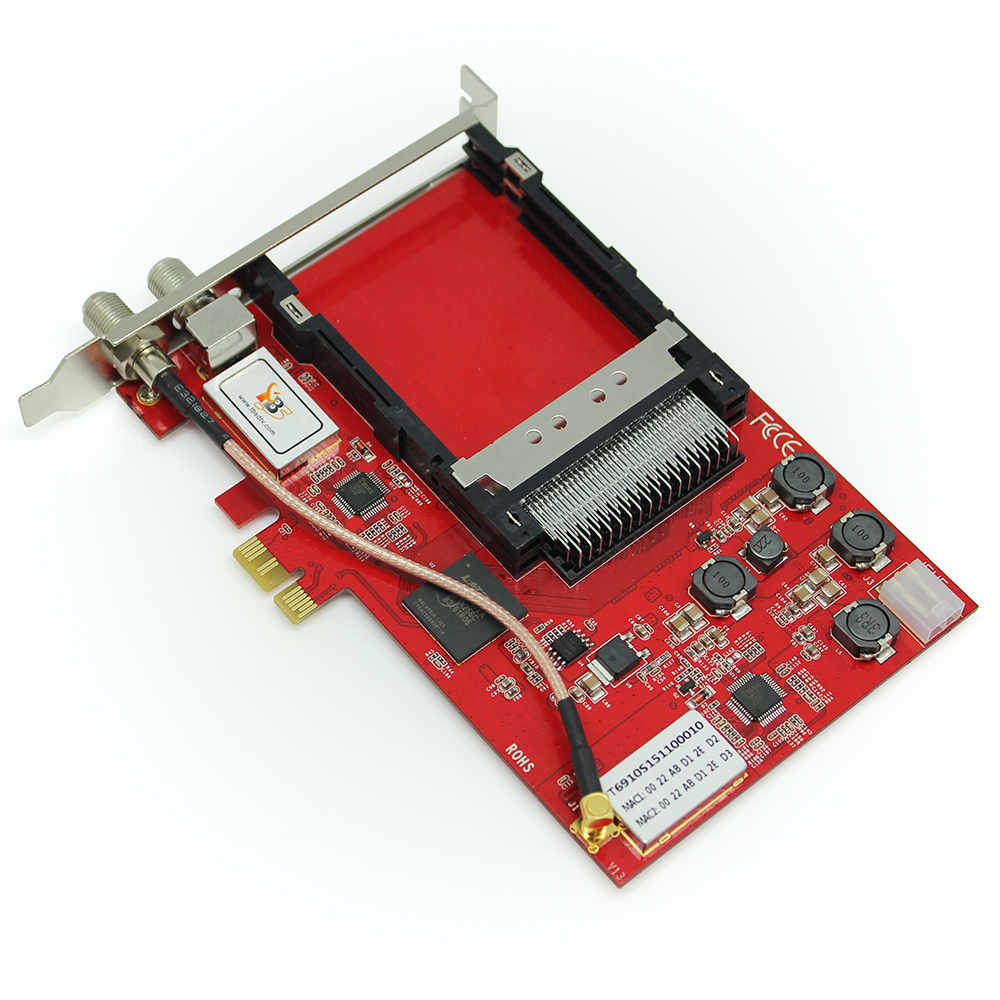 TBS6910 DVB-S2 Dual Tuner Dual CI PCIe Card is a twin tuner digital satellite TV for watching or recording two different channels from two different frequencies simultaneously. You can use one tuner to watch TV channel while using another tuner to record/watch another channel from another transponder/ satellite at same time. TBS6910 is integrated with two CI slots, inserting the correct CAM and subscription smartcard into the CI slot makes it possible to watch encrypted pay TV.