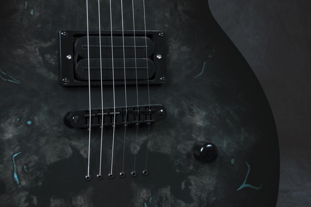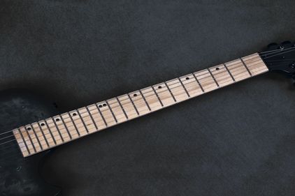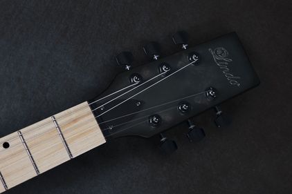 The body and neck are of a 'set' construction, which means they are joined together and hand-carved as one piece as opposed to being bolted together separately. A set and carved neck is extremely beneficial for a number of reasons, such as quality of tone or 'timbre' and better hand comfort around the neck heel. It's an easier guitar to play, sounds great and also gives the Rune an incredibly stylish look. Opting for the simple approach with this guitar design, Lindo chose a single humbucker for the Rune - but with a 'coil-split' push/pull volume knob. This handy feature enables you to split the humbucker into a single-coil pickup by just pulling the knob upwards. The versatile split or full humbucker option gives the player a different range of tones for rhythm, lead and fingerstyle.