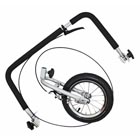 durch den ebenfalls verstellbaren Haken an einer Seitenstrebe des Gepäckträgers.