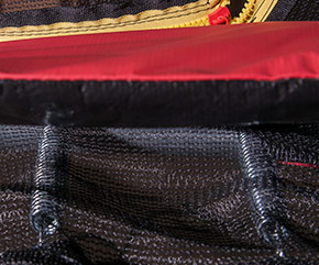 So überzeugt die besondere Konstruktion des Fangzauns gleich doppelt. Der große Abstand zu den Stangen erhöht die Sicherheit und dank mittig liegendem Netz ist die Sprungfläche sehr geräumig.