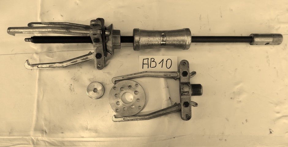 1x Abzieher aus Bundeswehr-Lagerbestand 2 Arm: max Spannweite ca 120mm Spannhöhe ca 165mm 3 Arm: max Spannweite ca 110mm (rechnerisch) Spannhöhe ca 155mm Spindel Ø 19mm Spindellänge ca 250mm kleine Scheibe Ø 40mm große Scheibe Ø 90mm