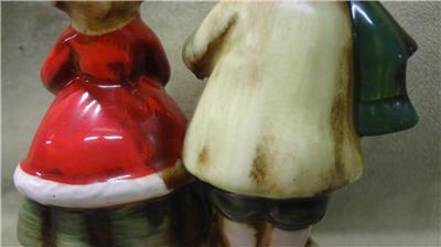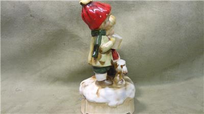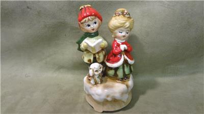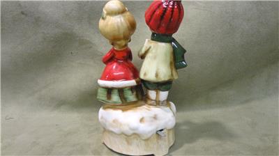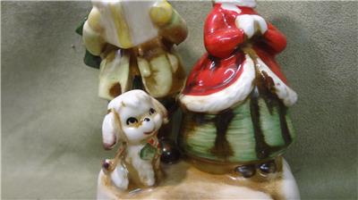 Vintage Ceramic Made in Japan Boy Girl & Puppy Music Box. This is a Christmas / Holiday Season themed music box. This item is in working condition. It is a little dusty, but otherwise fine.