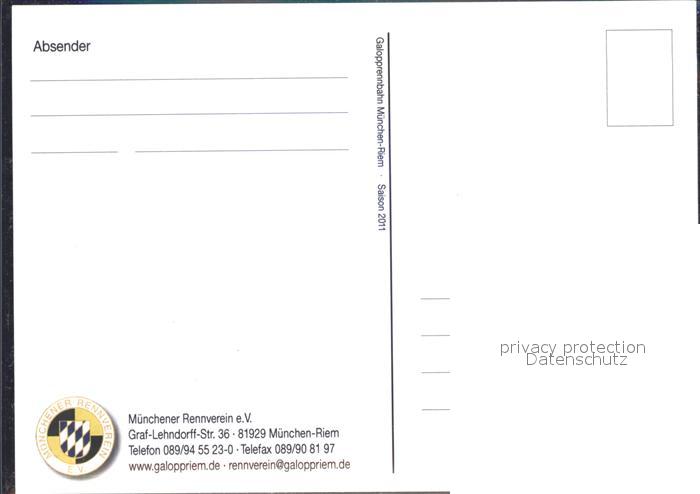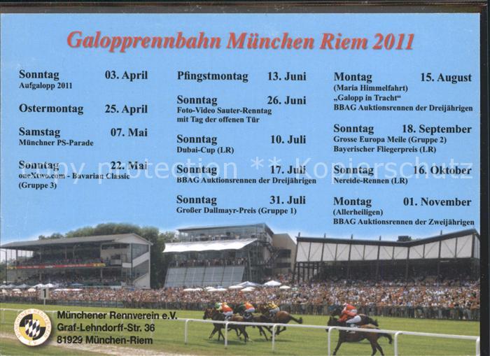 Pferdesport Pferderennen Reitsport Galopprennbahn Muenchen Riem Sport postalisch nicht gelaufen 2011 Erhaltung siehe scans Alte Ansichtskarte Postkarte PaolPID1