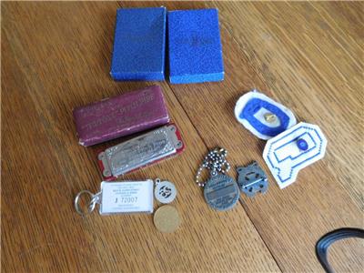 THIS ITEM IS A::::: great lot and MORE did not make the heading,, click on each plz.. DO NOT THINK the INDY Headquarters AMERICAN LEGION OLD PAST PRESIDENT AND OTHER FRATERNAL '; AMERICAN LEGION MILITARY PINS,, VERY NICE AND TWO BOXES,, NEXT IS A WORKING,, VERY CLEAN M. HOHNER'S COOL HARMONICA, NO CLUE IS WORTH A DINE,, BOX IS SOLD USED,, OK-- AN OLDER ESSO GASOLINE AND A 1960'S GULF KEY CHAIN,, VERY COOL-- ANOTHER STERLING MILITARY PIN,, TWO OLDER QUOTA CLUB PINS, A MYSTERY 25 YEAR FRAT PIN OR ORGANIZATION?? AND A GIRL SCOUT PIN TOO,, OK FREE SHIP AND ALL SOLD AS FOUND AND AS IS,, gifts for u and Christmas? FREE SHIP again :-)