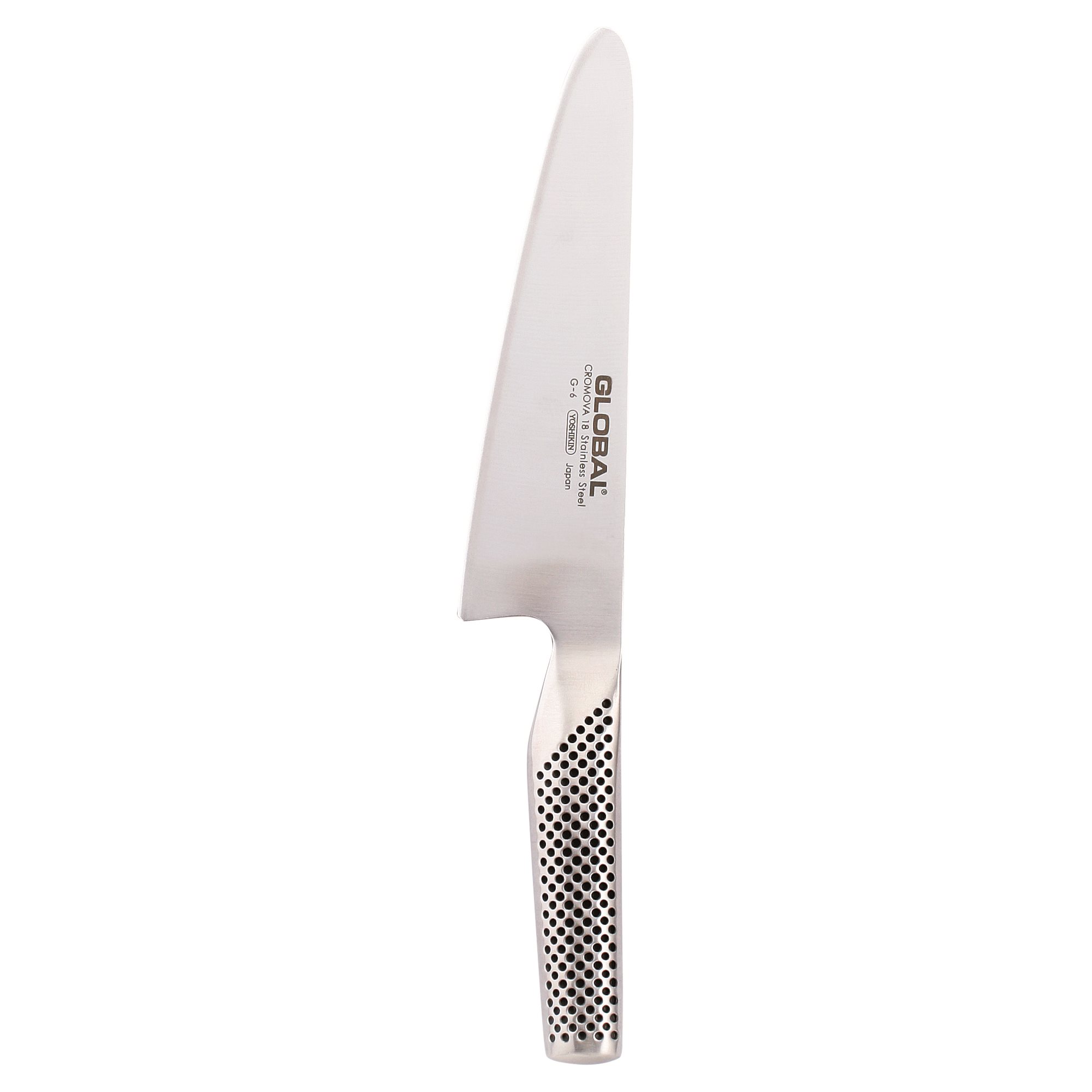 Kochmesser G-6 / 18cm Klingenlänge Global Messer werden aus "Cromova 18" gefertigt und dann von Hand rasierklingenscharf geschliffen. Diese "Cromova 18" Klingen (Molybdän-Vanadium Stahl) der Global Messer sind hart und sehr resistent gegen äußere Einflüsse wie z.B. Speisesäuren