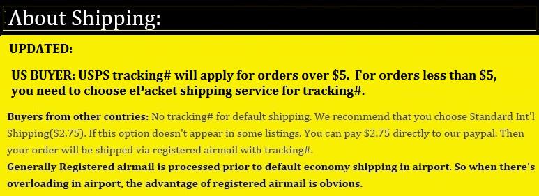 - Hey, if you're not in USA and you really need a tracking number, extra $3 will be charged. Contact us before payment. Then we'll update your invoice and ship your order via Registered Airmail which needs your signature upon receipt. It's a bit faster than economy airmail. But that's absolutely safe.