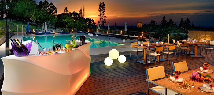 Das Hotel, ideal sowohl für Geschäfte als auch für das Vergnügen, verfügt über 90 komfortreiche Zimmer, einen unschlagbaren SPA-Bereich von 1.800 m² mit Außenpool, einen Park mit Lounge Bar, ein Fitness Studio, einen großen Parkplatz, ein Gourmet Restaurant, ein modernes Kongresszentrum und Räume für Privatveranstaltungen.
