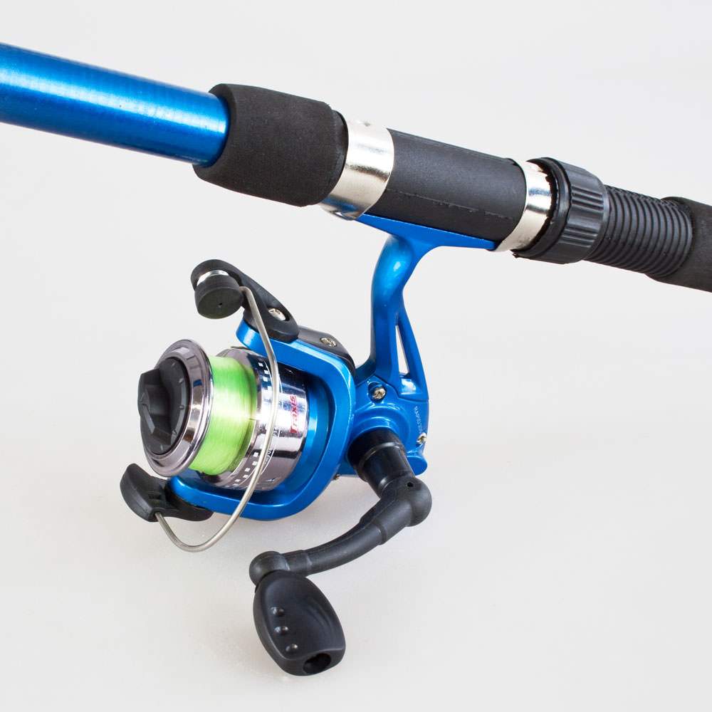 Die zu diesem Set passende Rolle wurde gleich mit Schnur bespult und erlaubt es sofort los zu legen. Sie hat eine farbige Metallic Graphitespule und arbeitet mit einer Frontbremse. Die Farbe des Spulenkopfes kann variieren und ist nicht wählbar. Zudem ist sie als Rechts- und Linkshandrolle zu gebrauchen. Verlässlich ist auch das starke Powergetriebe, ganz gleich wie stark der Fisch an der Angel zieht. Das Set enthält eine Rute in 210cm mit 5-30g Wurfgewicht. Die Rolle wurde bereits mit einer 0,20er Schnur bespult. Passend für diese Rute und Rolle werden diese gleich in einer praktischen Tragetasche geliefert.