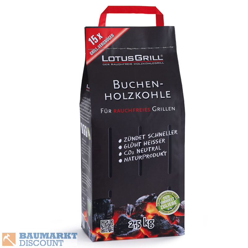 LotusGrill Buchen Holzkohle 2,5 kg für rauchfreies Grillen