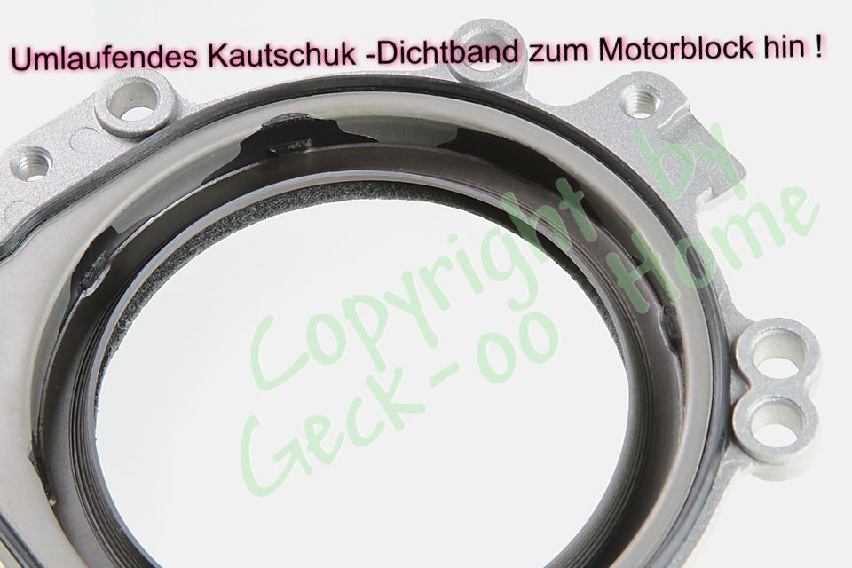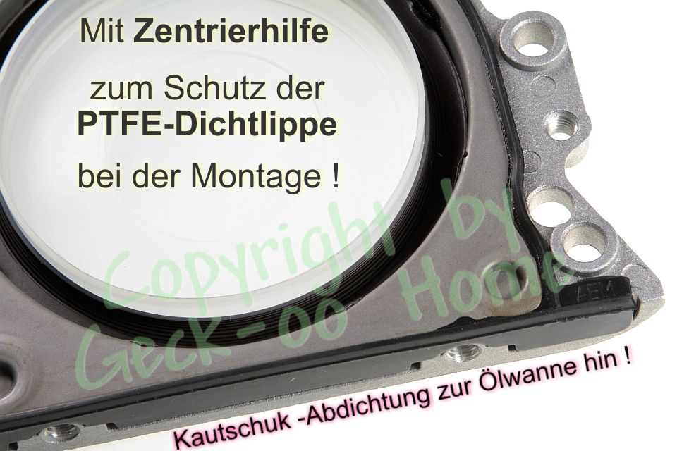 Geben Sie an dieser Stelle also die wenigen EURO mehr aus und vermeiden Sie das Risiko, das sich bei der spar- sameren Lösung (nur Wellendichtring aus FPM/ACM ohne Flansch) der Wellendichtring nicht in den vorhandenen Flansch einpressen läßt. Denn: wenn Sie bereits einen solchen in einem Stück produzierten Dichtflansch (wie hier) am Motor haben, dann ergibt sich das Problem, dass aus diesem nicht der alte Simmerring ausgedrückt und einfach der neue eingezogen werden kann !!