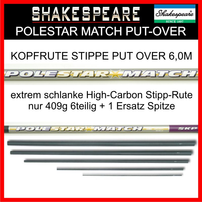 | Beschreibung: Mit dieser Serie biete ich Euch hier eine professionelle Kopfrute für die Stippangelei. Die Firma Shakespeare hat hier wirklich eine super leichte Rute an den Start gebracht die woanders für so kleines Geld kaum zu bekommen sein dürfte. Bestehend aus einem leichten High Carbonblank und der klassischen Aufteilung einer Put Over Kopfrute. Kleiner Tip an alle Nichtangler die Ihrem Nachwuchs was schönes schenken wollen: Auch wenn sie extrem günstig ist. Diese Rute eignet sich nicht unbedingt für kleinere Kinder als Einsteigerrute. Da man die Teile nicht auf die Erde legen sollte damit kein Schmutz zwischen die Steckverbindungen gelangt. Sie ist aber ein idealer Begleiter für alle die das Hobby dann schon etwas ernster nehmen und auch achtsam mit dem Material umgehen. Denn vom Handling her ist es ein Traum mit dieser rute zu arbeiten. Im Unterschied zur Pole Star Eco die Ihr je nach Verfügbarkeit auch noch in unserem Shop findet, kommt bei dieser Match High Carbon Material und kein Mix mit Glasfaser zum Einsatz. Daher ist sie nochmals spürbar leichter und auch taffer in der Aktion. Und die Kenner unter Euch wissen ja jedes Gramm zählt, denn auf die Länge wird aus einem Gramm nicht nur gefühlt 50Gramm sondern wer das Hebelgestz kennt weiß dass es auch wirklich so ist. Und wenn Ihr Euch nun noch den Preis anschauht, dürfte auch dem Letzten von Euch klar sein, daß man mit so einem Teil zu einem solchen Preis eigentlich nichts verkehrt machen kann, also wartet nicht zu lange ;-)