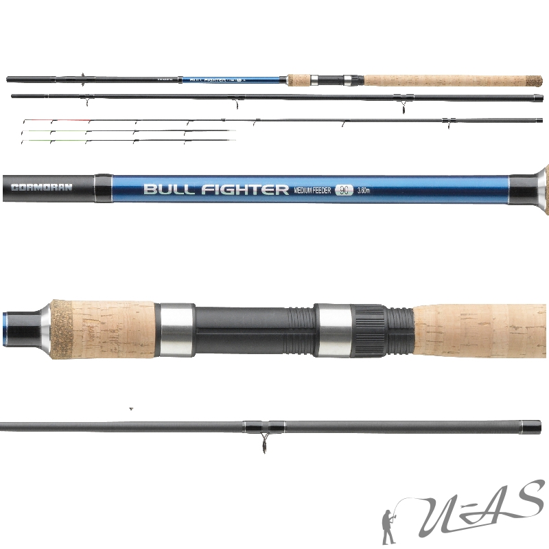| Beschreibung: Hier biete ich Euch die BULL FIGHTER FEEDER SM20 HIGH CARBON FEEDERRUTE von Cormoran. Komplett neu entwickelte Feeder Ruten aus SM20 HIGH CARBON, lieferbar in vielen Wurfgewichts-Klassen, für einen erstaunlich günstigen Preis. Was Cormoran hier auf die Beine gestellt hat , hat mich persönlich selbst überrascht, als ich diese Ruten das erste mal in der Hand hatte. für extrem kleines Geld bekommt man hier wirklich echte Carbon Ruten die sich auch gleich auf den ersten Blick von Ihren Mitbewerbern in dieser Preisklasse durch einen viel schlankeren Blank absetzt. natürlich bekommt Ihr für dieses Geld noch keine High End Profi Gerätschaft, aber es sind wirklich Ruten die nicht nur für Einsteiger gemacht wurden. Auch die Beringung ist hier etwas größer gewählt ab den 180g Gewichtsklassen hat diese Serie dann sogar XL Spitzen Ringe. Also kann ich Euch hier ruhigen Gewissens ans Herz legen, wer auf der Suche nach einer guten und preiswerten Feederrute ist hier wirklich goldrichtig. Mit dieser Feederrute ist es selbst für ungeübte Friedfischangler kein Problem, Futter und Hakenköder an den gewünschten Fangplatz zu bringen. Die kraftvollen SM20C Kohlefaserblanks verleihen den Cormoran Bull Fighter Feederruten viel Power für weite, zielgerichtete Würfe. Dank der 3 auswechselbaren Feederspitzen aus Glasfaser ist eine variable Bisserkennung garantiert, da der Fisch kein Gewicht bewegen muss wie beim normalen Posen- oder Grundangeln. Ausgestattet mit langem Korkgriff, der eine optimale Hebelwirkung für weite, kraftvolle Würfe garantiert.