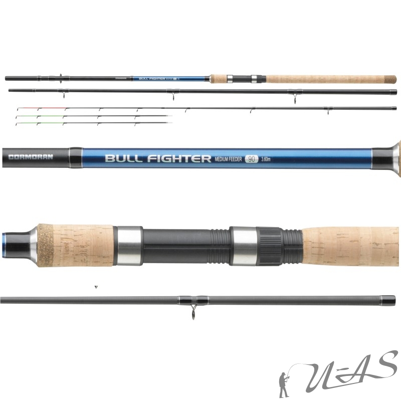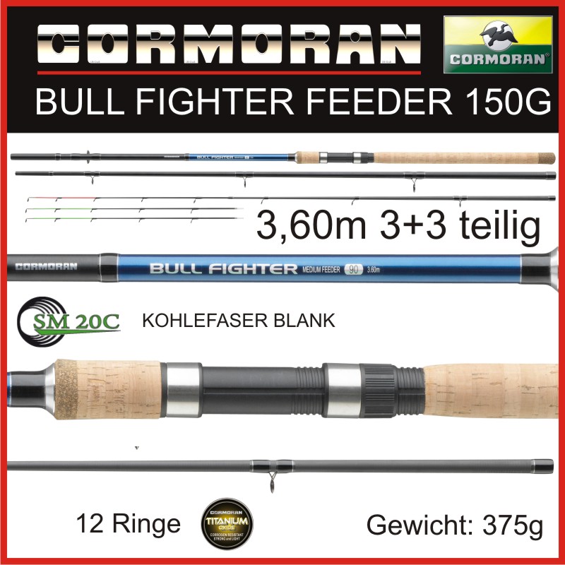 | Beschreibung: Hier biete ich Euch die BULL FIGHTER FEEDER SM20 HIGH CARBON FEEDERRUTE von Cormoran. Komplett neu entwickelte Feeder Ruten aus SM20 HIGH CARBON, lieferbar in vielen Wurfgewichts-Klassen, für einen erstaunlich günstigen Preis. Was Cormoran hier auf die Beine gestellt hat , hat mich persönlich selbst überrascht, als ich diese Ruten das erste mal in der Hand hatte. für extrem kleines Geld bekommt man hier wirklich echte Carbon Ruten die sich auch gleich auf den ersten Blick von Ihren Mitbewerbern in dieser Preisklasse durch einen viel schlankeren Blank absetzt. natürlich bekommt Ihr für dieses Geld noch keine High End Profi Gerätschaft, aber es sind wirklich Ruten die nicht nur für Einsteiger gemacht wurden. Auch die Beringung ist hier etwas größer gewählt ab den 180g Gewichtsklassen hat diese Serie dann sogar XL Spitzen Ringe. Also kann ich Euch hier ruhigen Gewissens ans Herz legen, wer auf der Suche nach einer guten und preiswerten Feederrute ist hier wirklich goldrichtig. Mit dieser Feederrute ist es selbst für ungeübte Friedfischangler kein Problem, Futter und Hakenköder an den gewünschten Fangplatz zu bringen. Die kraftvollen SM20C Kohlefaserblanks verleihen den Cormoran Bull Fighter Feederruten viel Power für weite, zielgerichtete Würfe. Dank der 3 auswechselbaren Feederspitzen aus Glasfaser ist eine variable Bisserkennung garantiert, da der Fisch kein Gewicht bewegen muss wie beim normalen Posen- oder Grundangeln. Ausgestattet mit langem Korkgriff, der eine optimale Hebelwirkung für weite, kraftvolle Würfe garantiert.