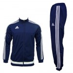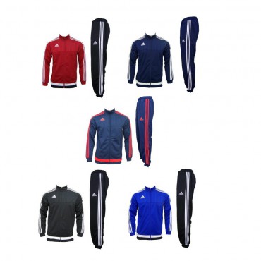 adidas Tiro 15 Trainingsanzug. Der adidas Tiro 15 Trainingsanzug ist mit einem durchgehendem Reißverschluss, Stehkragen, 2 Taschen (verschließbar) ausgestattet. Desweiteren ist der Adidas Trainingsanzug aus 100% Polyester und ist innen weich aufgeraut. Der Bund und die Armabschlüsse der Jacke sind mit einem Gummi ausgestattet. Die Adidas Hose hat ein elastischen Bund mit Kordel und Gummibund und Reißverschluss am Beinabschluss + 2 verschließbare Taschen. Das Adidas Logo ist auf Jacke und Hose gestickt.