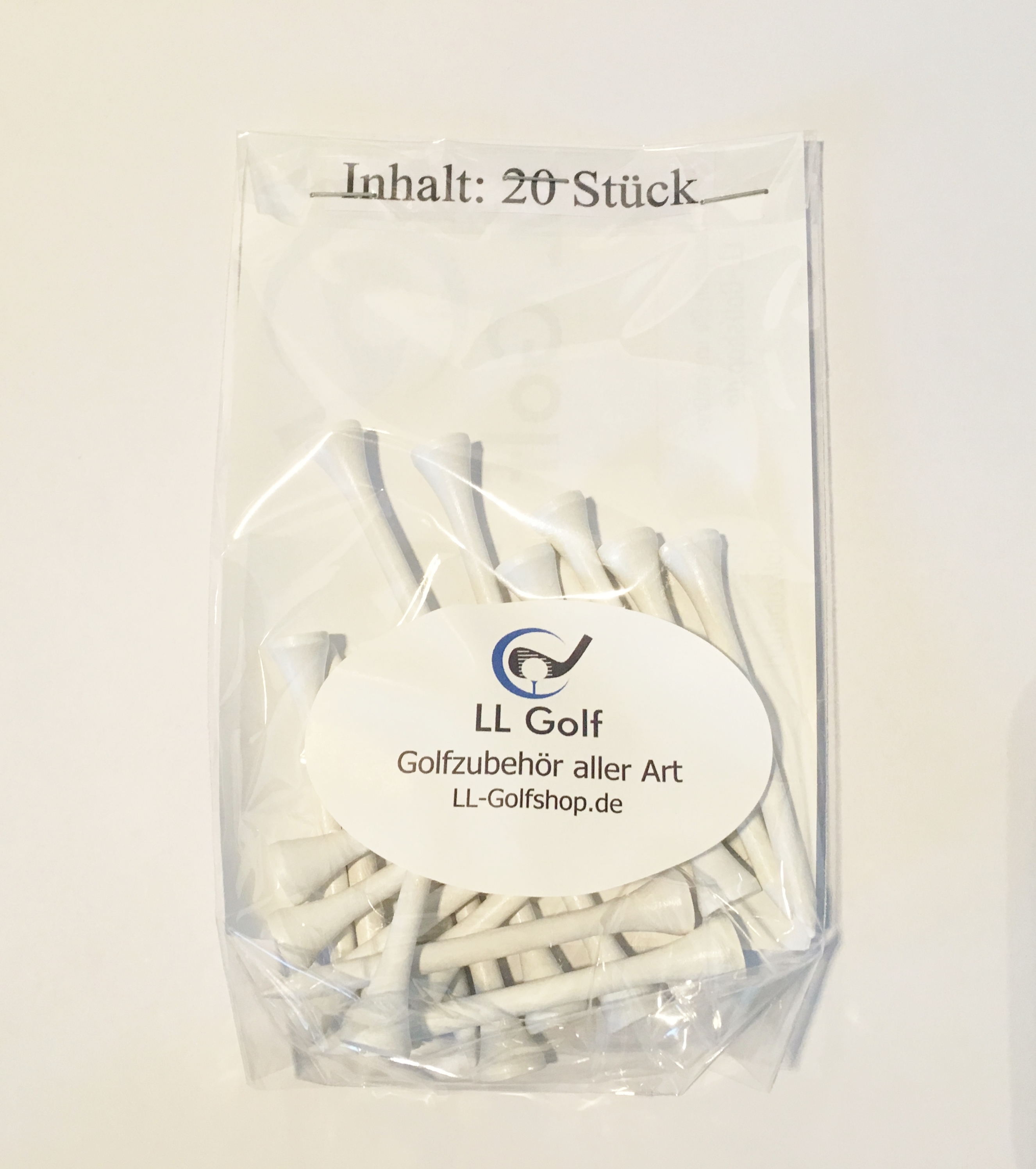 Weiße Golf Tee's aus Holz.