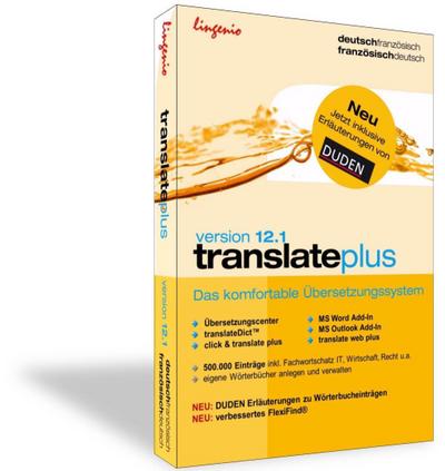 translate plus 12.1 Deutsch-FranzösischWeitere Bücher:Französisch / Wörterbuch (allgemein) / Software Übersetzung / Software Art Nr.: 3942253194 ISBN 13: 9783942253192 Untertitel: Das komfortable Übersetzungssystem Erscheinungsjahr: 2013 Erschienen bei: Lingenio Gmbh Einband: CD-ROM Maße: 190x136x17 mm Gewicht: 115 g Sprache: Französisch, Deutsch