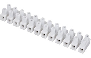 - Terminal blocks (12-way strips) in polythene insulation, heat resistant up to 65°C.