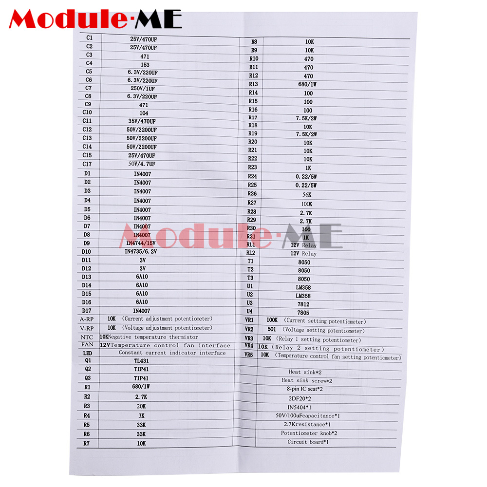 This kit provides all components and circuit schematic diagrams, but users need to prepare transformers, casings, and voltage and ammeters by themselves! The user must understand that there may be failures due to unsuccessful assembly due to various unexpected reasons, and the user will be responsible for the losses.