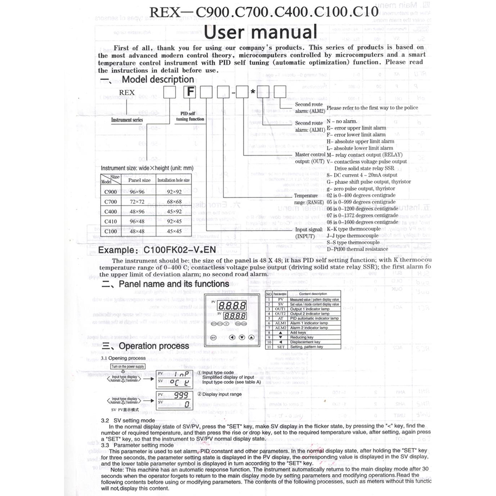 12. PID Temperature Controller Detective temperature rang: 0 to 999℃