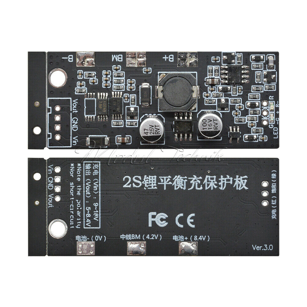 1, according to wiring diagram to connect the lithium battery with protection board, when the battery voltage between overcharge and discharge, and Vin +, GND charge for 1 second, Vout + and GND output voltage is 2S battery voltage.