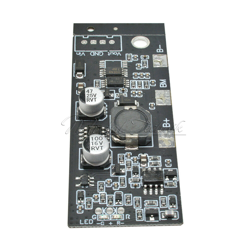 1. Power DC-DC constant current conversion section: 9-15V input is converted into a constant 8.4V (high efficiency);
