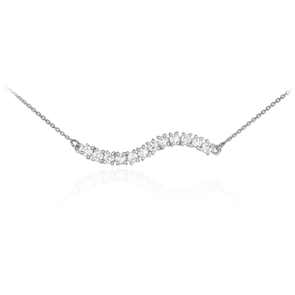 14K White Gold Journey Pendant Necklace studded with 14 cubic Zirconia's.
