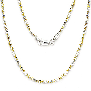 The featured Italian-made chain necklace is made up of diamond-cut faceted 2.3mm bead links cast in .925 sterling silver laced with 14k yellow gold plating then finished with a lobster clasp for secure wear.