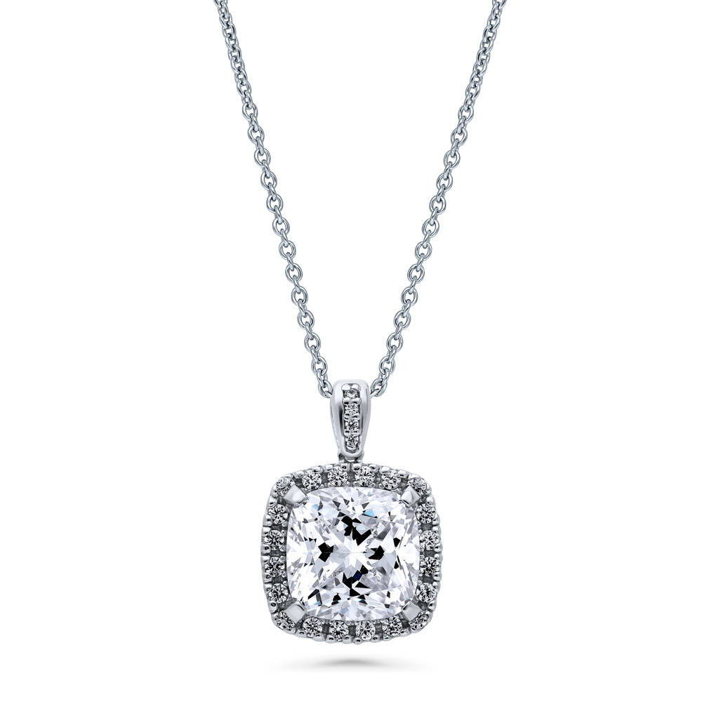 + Visit StoreBERRICLE Sterling Silver Cushion CZ Halo Flower Anniversary Fashion Necklace