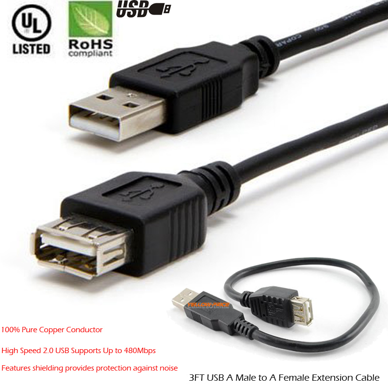 USB 2.0 Type A Male to Type A Female Cable (AMAF)