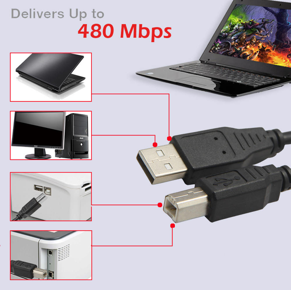 USB 2.0 Type A Male to Type B Male Cable (AMBM) for Printer & Scanner