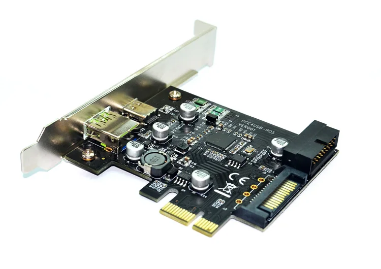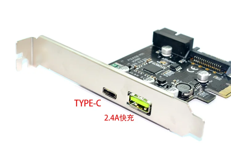 ITHOO PCI-e To USB3.1 Type-C Expansion Card PCIe To USB 2.4A Fast Charge + 19PIN Front USB Riser Card