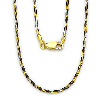 1.4mm 4-Side Snake Italian Chain Necklace in 2-Tone .925 Sterling Silver w/ Black Rhodium