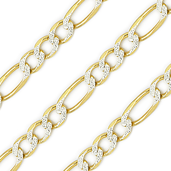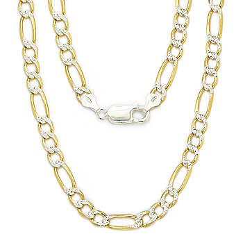 The featured Italian-made chain necklace is made up of diamond-cut detailed 4.3mm figaro links cast in .925 sterling silver. The chain is then plated with 14k yellow gold & rhodium then finished with a lobster-claw clasp for secure wear.