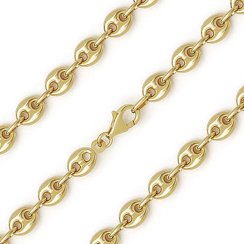 6.5mm Puffed Marina / Mariner Link Italian Chain Necklace in 14k Plated .925 Sterling Silver