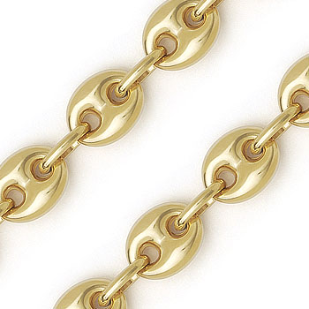 The featured Italian-made chain necklace is made up of alternating hollow 6.5mm puffed mariner & cable links cast in .925 sterling silver. The chain is plated with 14k yellow gold then finished with a lobster clasp for secure wear.