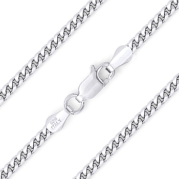 2.6mm Miami Cuban / Curb Link Italian Chain Necklace in Solid .925 Sterling Silver w/ Rhodium