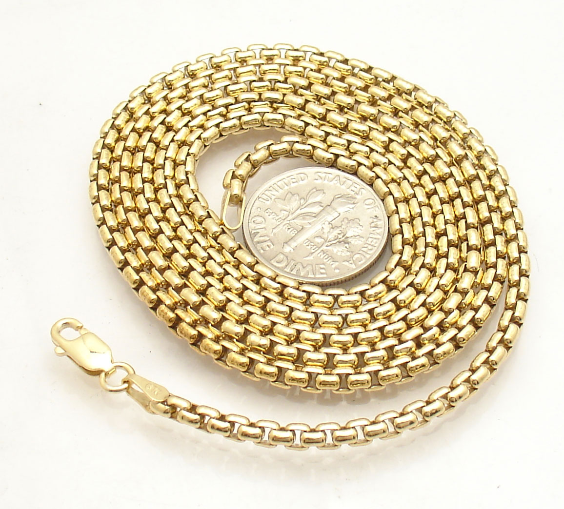 3mm Solid Round Box Chain Necklace 14K Yellow Gold Clad Sterling Silver"